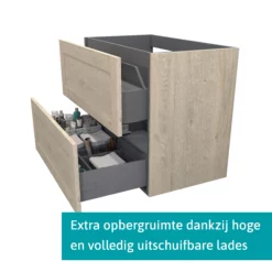 Modulo Badkamermeubel Met Wastafel | 80 Cm Lichtgrijs Eiken Kader Front Quartz 2 Lades Onder Elkaar