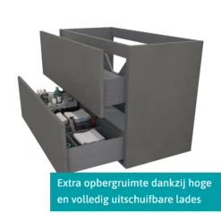 Modulo Badkamermeubel Met Wastafel | 100 Cm Eiken Greeploos Front Natuursteen 2 Lades Onder Elkaar