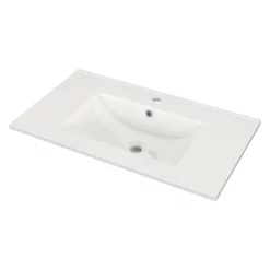Modulo Badkamermeubel Met Wastafel | 80 Cm Middengrijs Greeploos Front Keramiek 1 Lade