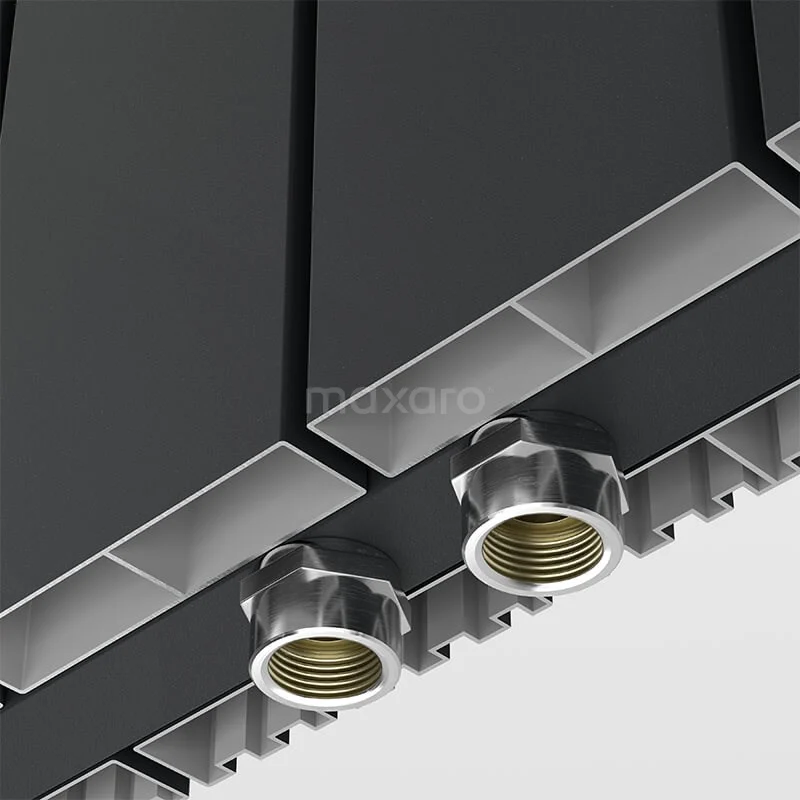 De radiator is voorzien van een rechthoekige vormgeving en heeft twee verschillende kanten. Dit unieke design bestaat uit een vlakke kant met lamellen en zijde met inkepingen, zodat u thuis zelf kiest hoe u de radiator ophangt. Daarnaast is de mat zwarte afwerking de perfecte basis voor een industrieel interieur en ideaal om contrast aan te brengen.
