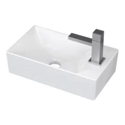 Dit fonteintje heeft een kraangat aan de rechterkant. Met een stijlvolle fonteinkraan maakt u het geheel compleet. Kies uit verschillende kleuren waaronder chroom, rvs, zwart, koper, zwart metaal of goud. Zo vindt u altijd een geschikt exemplaar voor uw fonteintje.