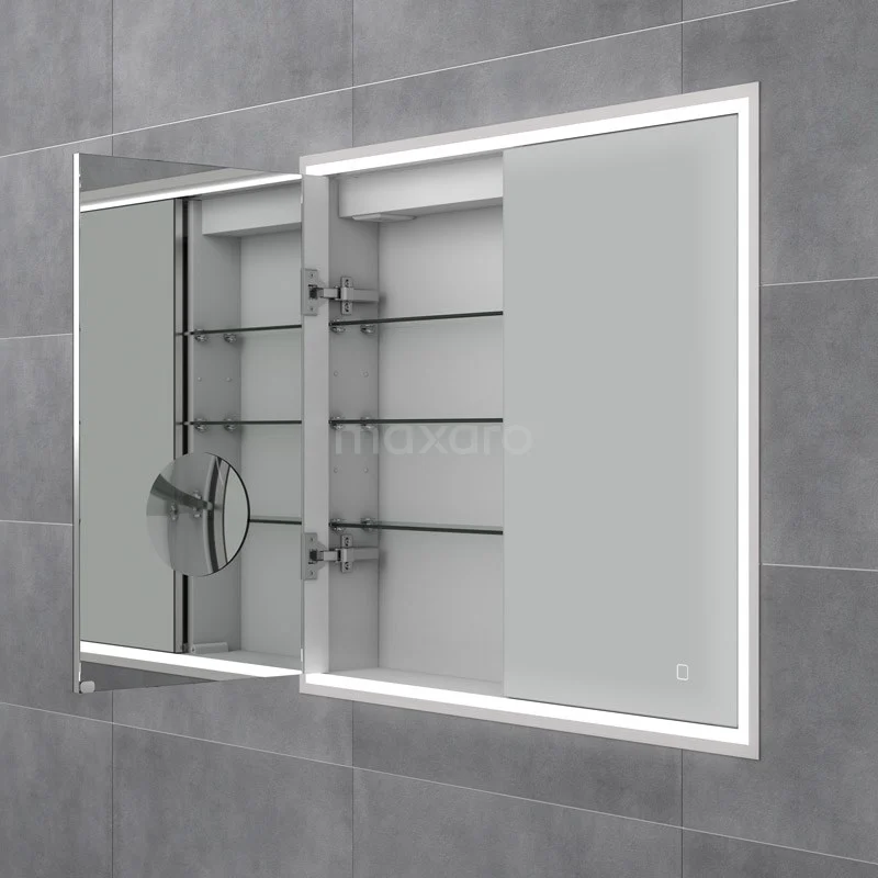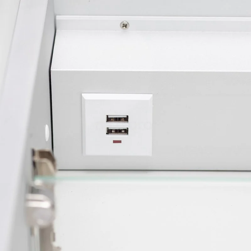 De spiegelkast beschikt over een aantal handige extra’s. Dit model heeft een stopcontact en 2 USB-aansluitingen om uw elektrische apparaten te gebruiken of op te laden. Verder zijn er binnenspiegels en een ingebouwde cosmeticaspiegel aanwezig. De spiegelverwarming zorgt ervoor dat u nooit meer last heeft van een beslagen spiegel na het douchen of baden. Middels de infraroodschakelaar bepaalt u de kleurtemperatuur van de verlichting. Op deze manier creëert u de juiste sfeer in uw badkamer.