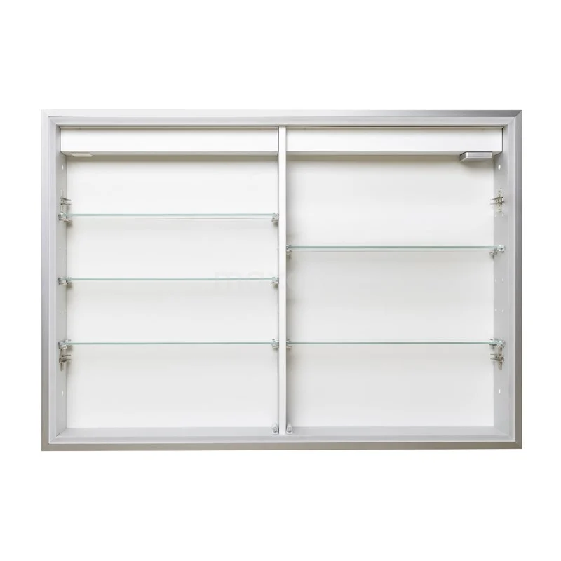 De prachtige spiegelkast is uitgevoerd in aluminium en heeft een rechthoekig design. Dit exemplaar is geschikt om deels in de muur te monteren, zodat u geniet van een strak eindresultaat. Door het tijdloze uiterlijk komt de kast in elke badkamerstijl tot zijn recht. De verlichting rondom de spiegel geeft het geheel een sfeervolle touch. Bovendien creëert de spiegel een ruimtelijk effect in uw badkamer.