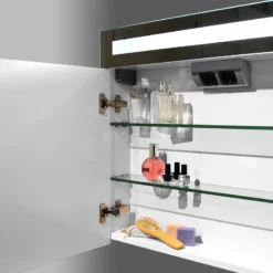 De stijlvolle make-up spiegel is voorzien van een rond design en heeft een tijdloze uitstraling. De ronde vormen geven het geheel een speelse twist en zijn ideaal om de rechte lijnen in een ruimte te doorbreken. Daarnaast heeft de spiegel een glanzend uiterlijk door de chromen afwerking. De geïntegreerde verlichting zorgt voor een sfeervolle touch.