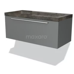 Modulo Badkamermeubel Met Wastafel | 100 Cm Lichtgrijs Eiken Vlak Front Mineraalmarmer 2 Lades Onder Elkaar
