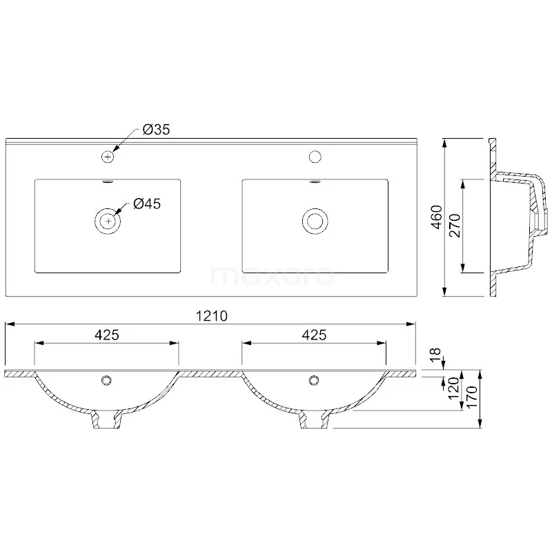 Het Modulo-badkamermeubel van 120 cm staat dagelijks centraal voor uw persoonlijke verzorging zoals make-up aanbrengen, scheren of tandenpoetsen. De wastafel heeft 2 kraangaten en is ideaal om door meerdere personen tegelijk te gebruiken. Ook biedt het meubel voldoende ruimte om uw toilet- en verzorgingsproducten netjes op te bergen.Â