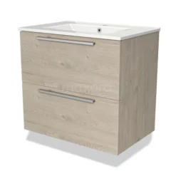 Dankzij het stijlvolle design is dit badkamermeubel de eyecatcher van uw badkamer. De onderkast is voorzien van een vlak front en heeft een lichtgrijs eiken afwerking. Deze prachtige eikenlook is een sfeervolle toevoeging aan uw badkamerinterieur. Daarnaast zorgt het vlakke front voor een tijdloze touch. De handgrepen dient u zelf toe te voegen. Deze zijn verkrijgbaar in verschillende kleuren en vormen
