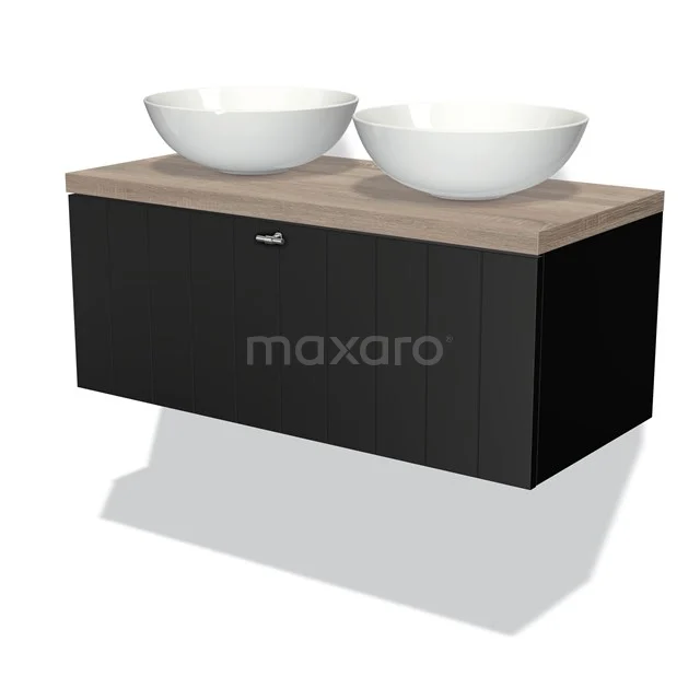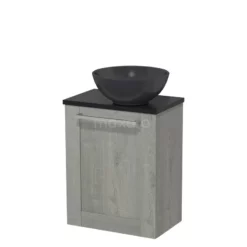 Dankzij het prachtige design is dit badkamermeubel de eyecatcher van uw badkamer. De mat zwarte onderkast heeft een industriële look-and-feel en is voorzien van een wastafelblad in eiken. Daarnaast beschikt het meubel over een lamelfront voor een landelijke touch. De handgreep dient u zelf toe te voegen. Deze is verkrijgbaar in verschillende kleuren en vormen.