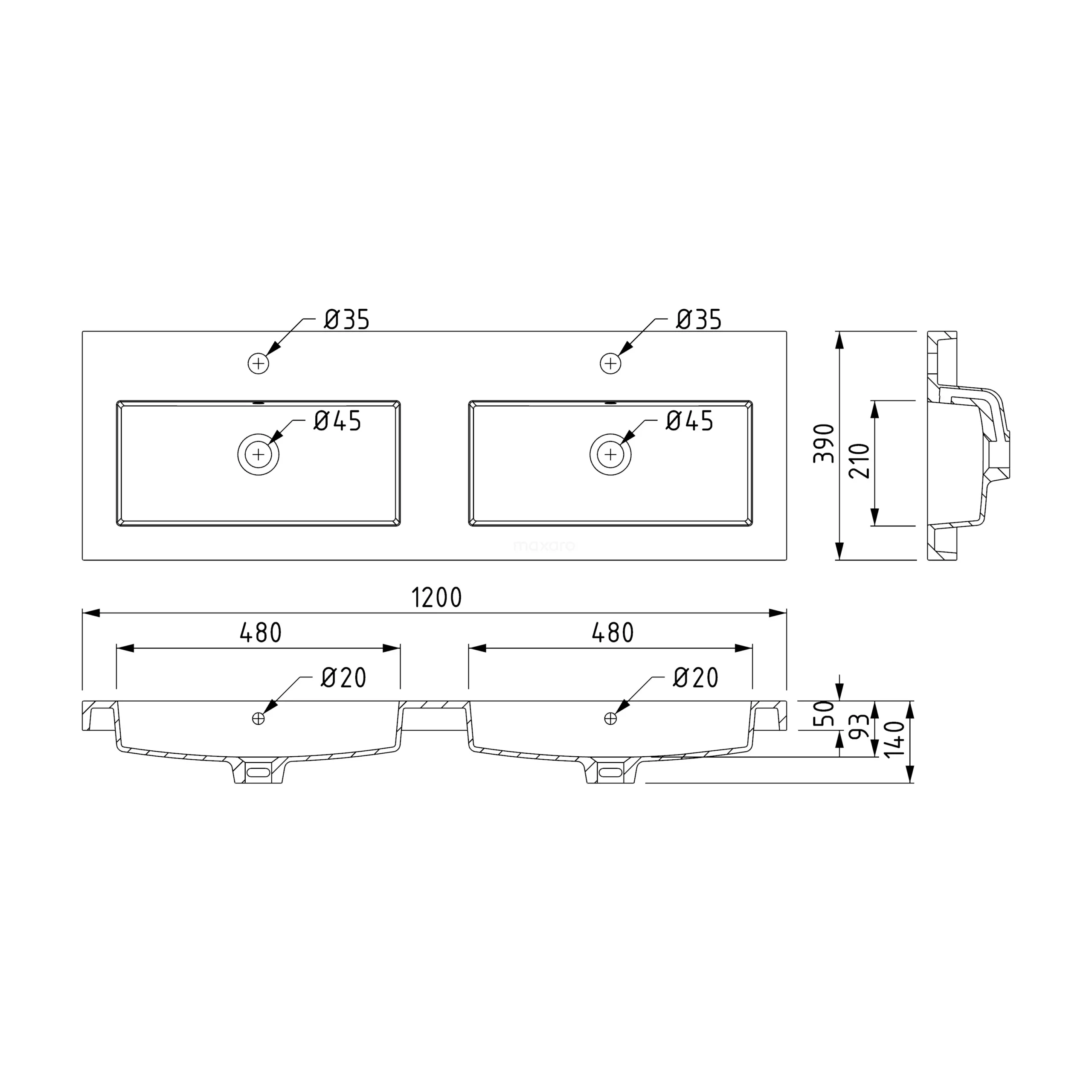 Mineraalmarmeren wastafel