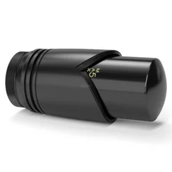 Radiatorkraan Thermostatisch Dubbel Haaks Linkshandig Met Voetventiel Mat Zwart-Mat Zwart