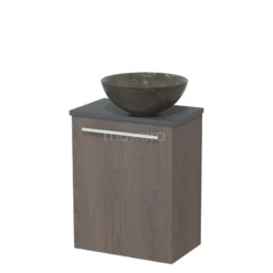 Toiletmeubel Met Waskom Natuursteen Modulo Donkerbruin Eiken Vlak 41 Cm Donkergrijs Blad