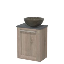 Toiletmeubel Met Waskom Natuursteen Modulo Lichtgrijs Eiken Kader 41 Cm Lichtbruin Eiken Blad